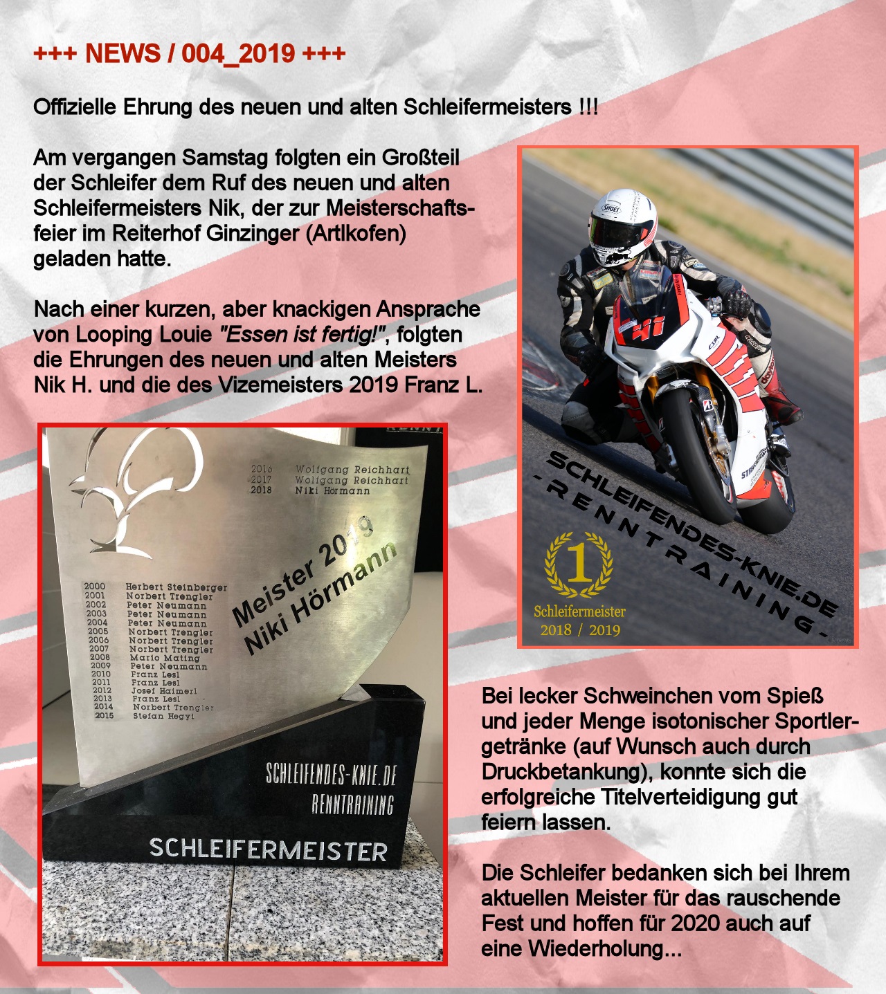 Nach den Siegerehrungen beendeten dann auch die übrigen Schleifer und Cup-Teilnehmer das zweite Rennwochenende 2019 und traten die Heimreise an.