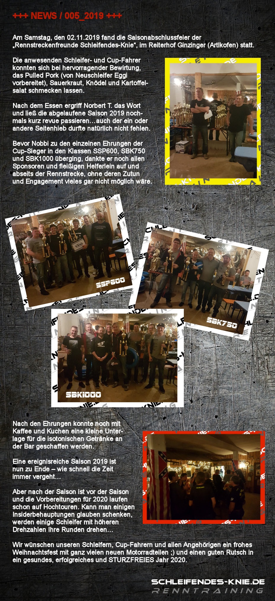 Die Ehrungen der Cup-Sieger findet im Zuge unserer Saisonabschlussfeier am 02.11.2019 im Reiterhof Ginzinger (Artlkofen) statt.
