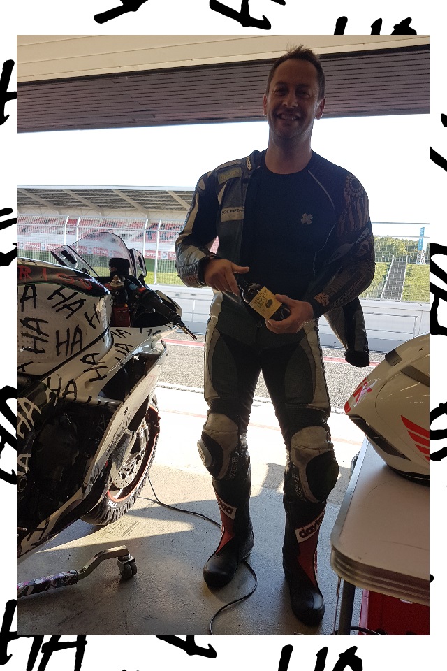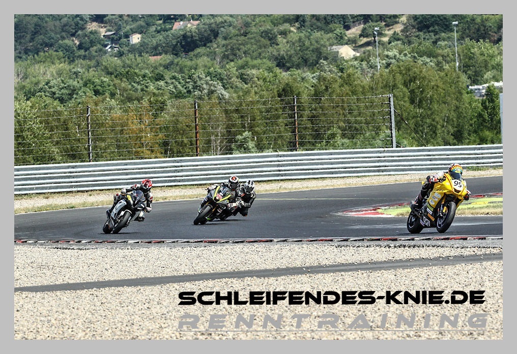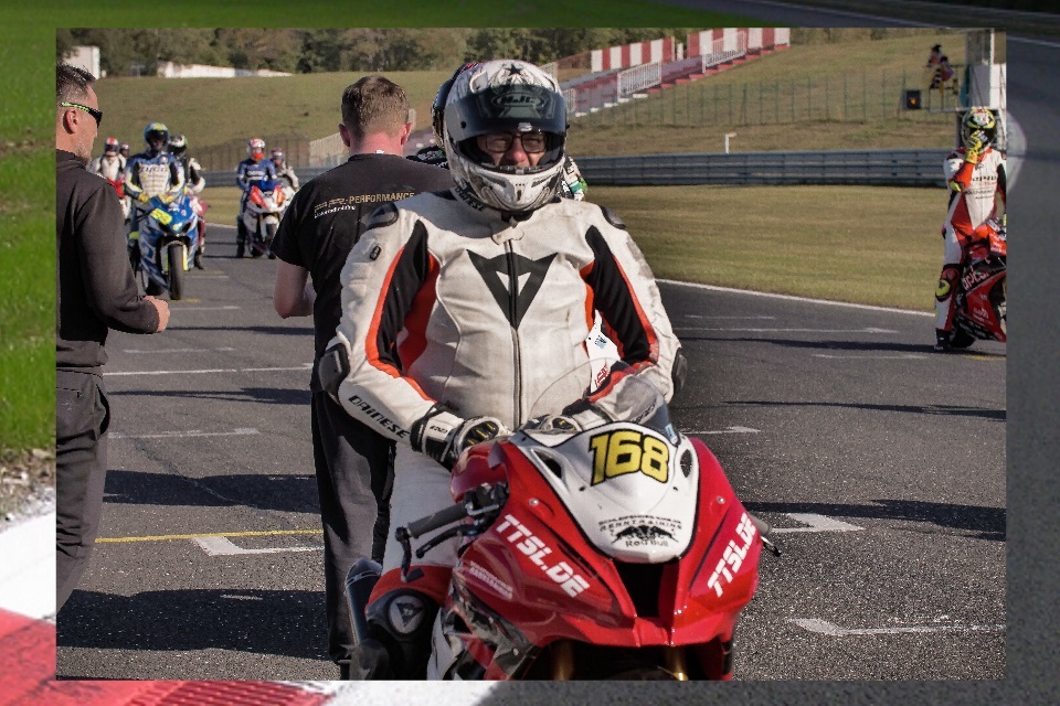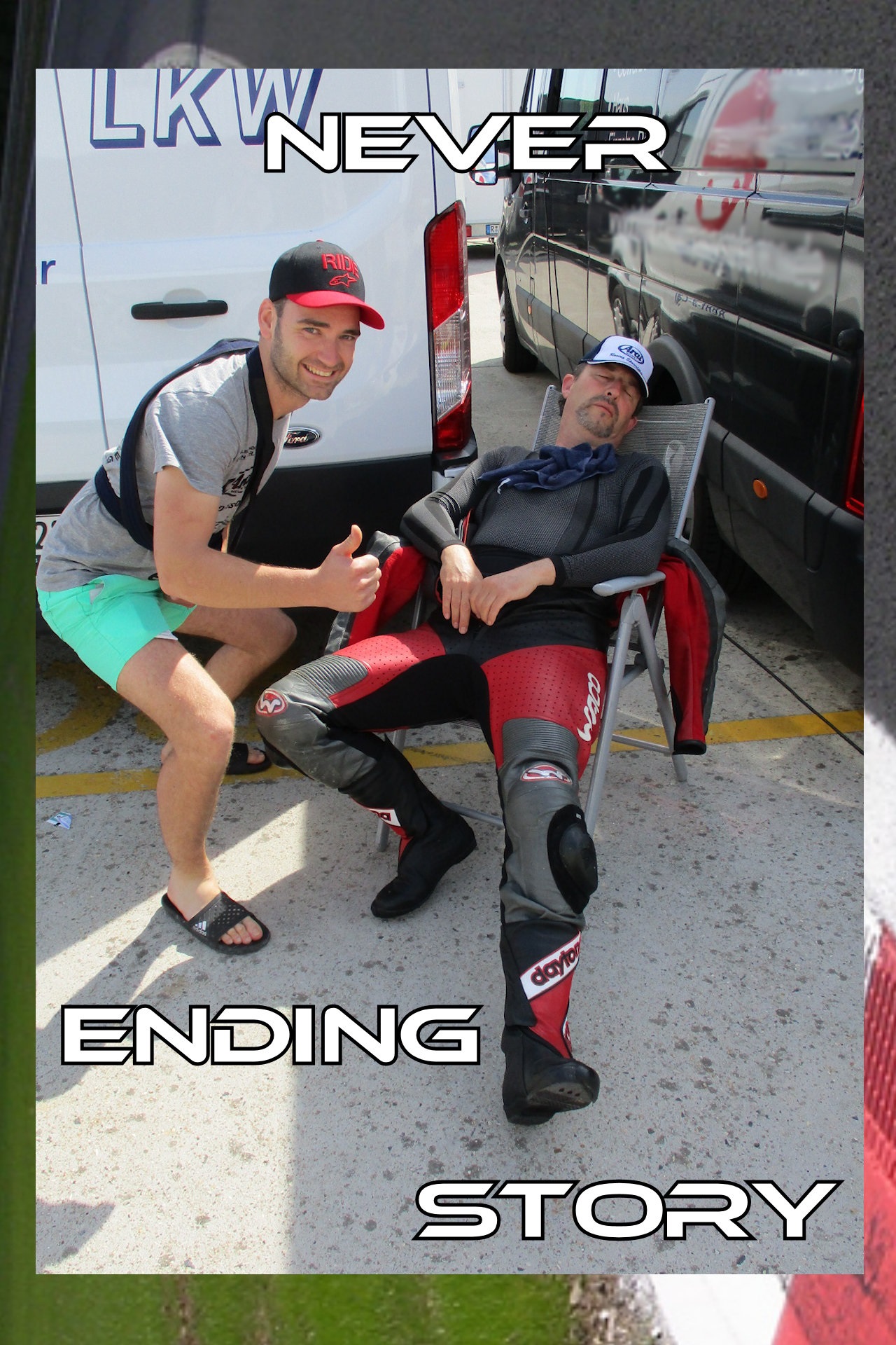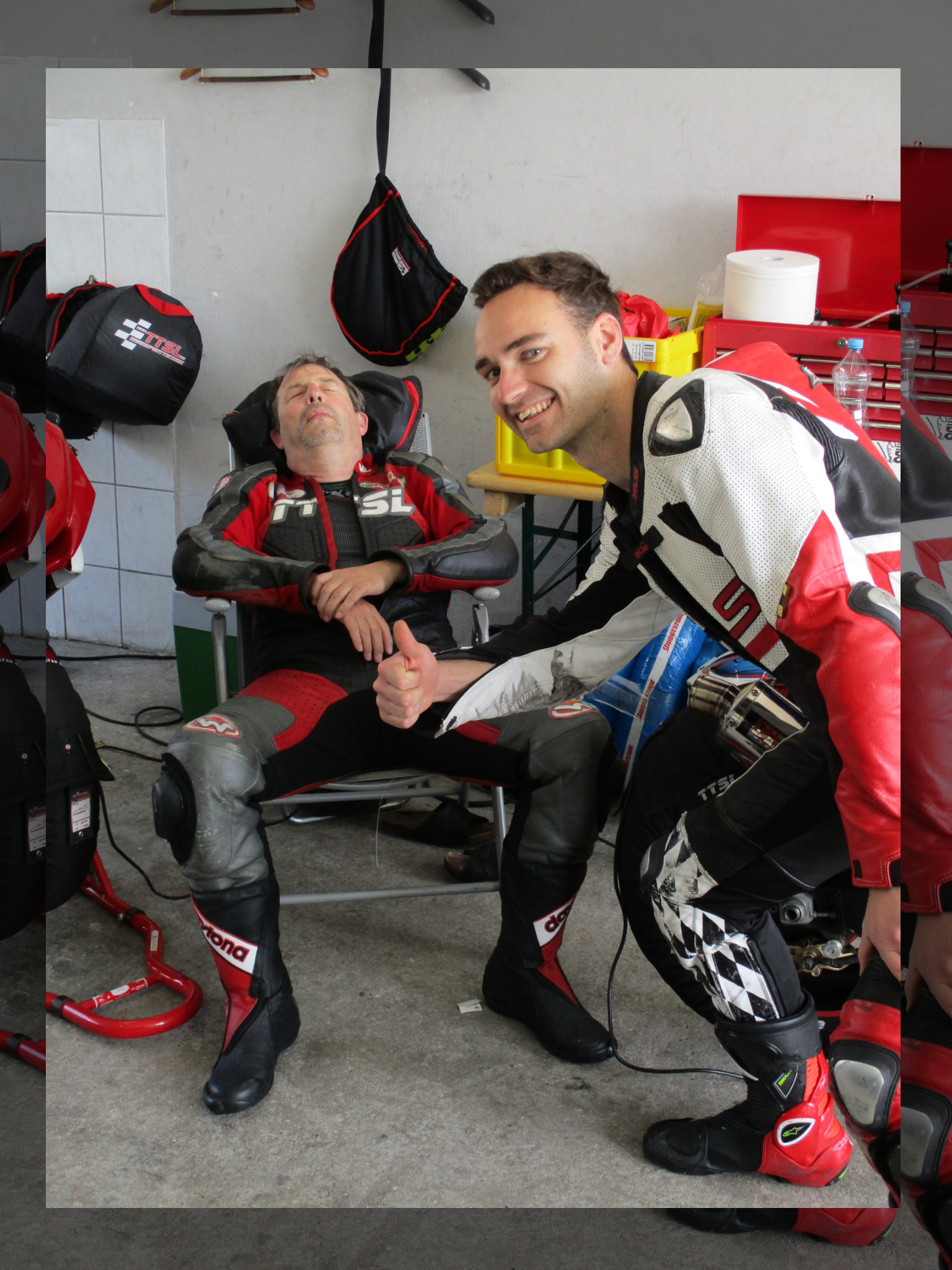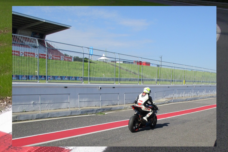 Am Freitagmorgen starteten nach der Fahrerbesprechung die ersten Gruppenturns bei sonnigen 25°C. Unsere Rennstreckenneulinge wurden wieder von unseren Instruktoren geführt, um das Streckenlayout und die Ideallinie besser vermitteln zu können. Schon nach den ersten Runden mussten einige Piloten zu Boden, geschuldet den schlechten Gripverhältnissen auf der Strecke oder auch einfach übermotiviert durch den bevorstehenden Gruppenwechseln in der Mittagspause. Jedoch ging die Sturzarie auch am Nachmittag weiter, da das Thermometer mittlerweile schnuckelige 29°C anzeigte, das Gripniveau immer schlechter und die Rundenzeiten langsamer wurden.