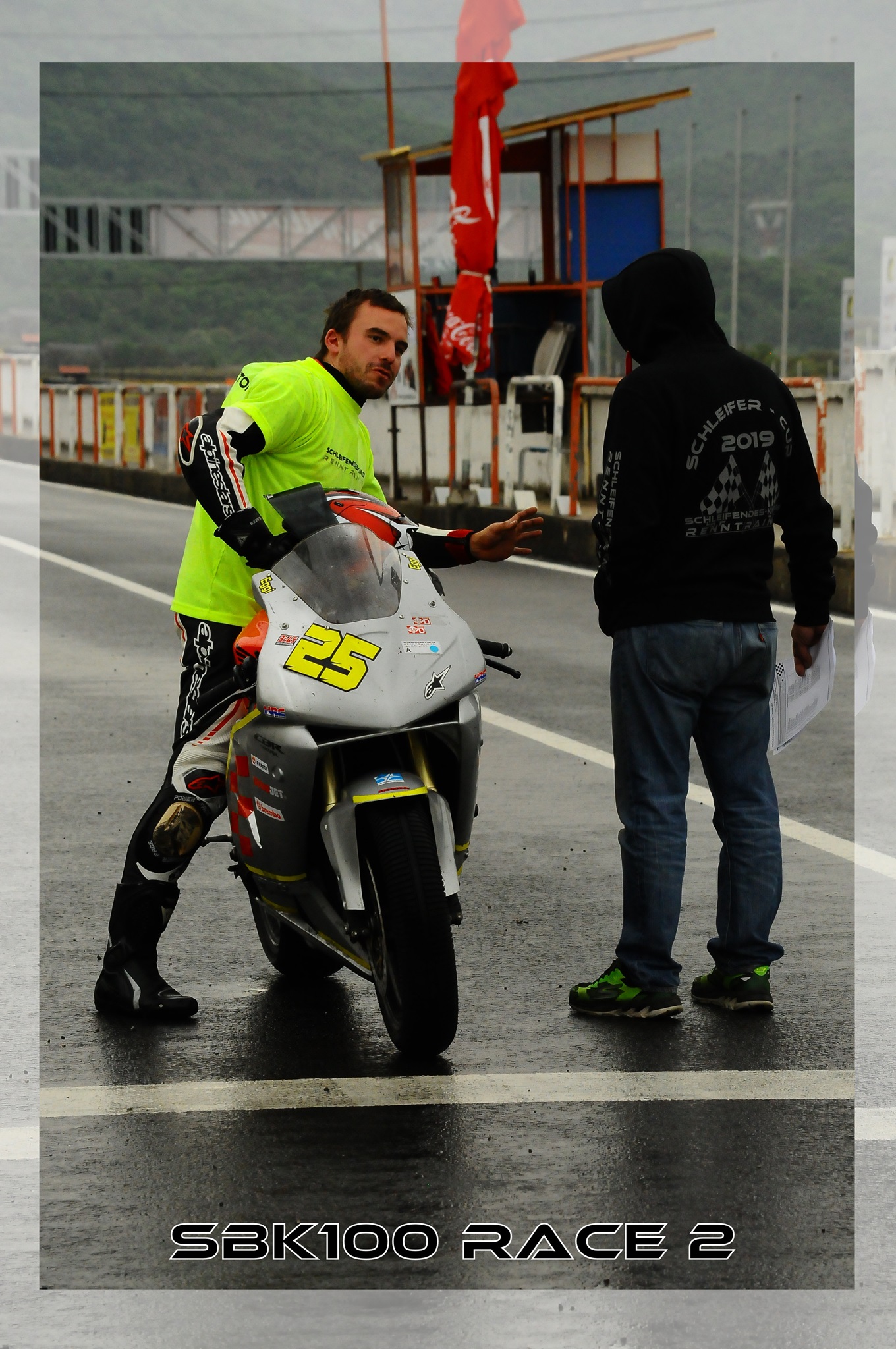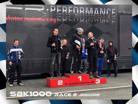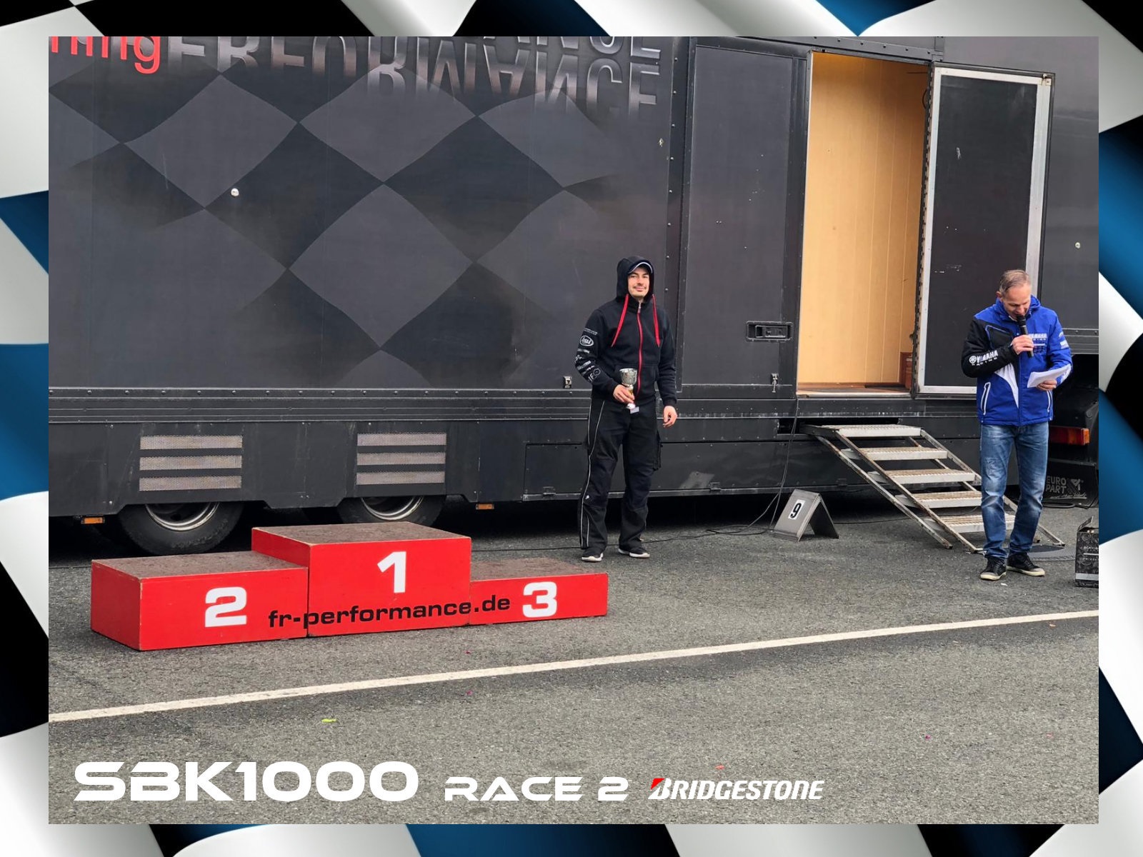 Über Nacht wurde der Regen stärker und hörte auch erst in den Morgenstunden wieder auf, so dass die Rennen 2 am Vormittag mit einem stark dezimierten Starterfeld als wet-race gestartet wurden. Die Strecke trocknete bei 7°C völlig unerwartet ab, sodass nach dem SBK700 Rennen, Slicks die bessere Reifenwahl gewesen wären. Christian O. konnte eben durch diesen Reifenpoker seinen ersten Gesamtsieg in der letzen Kurve (+0.018 Sek.) einfahren.