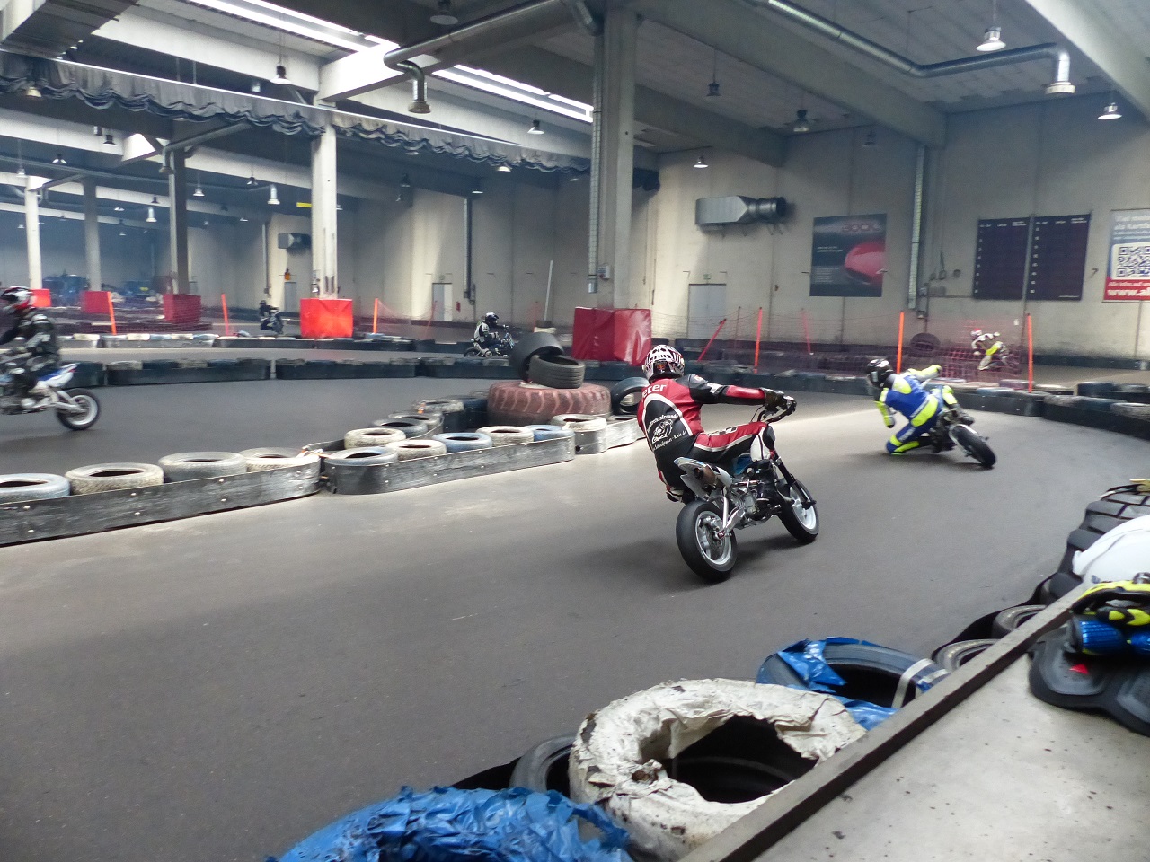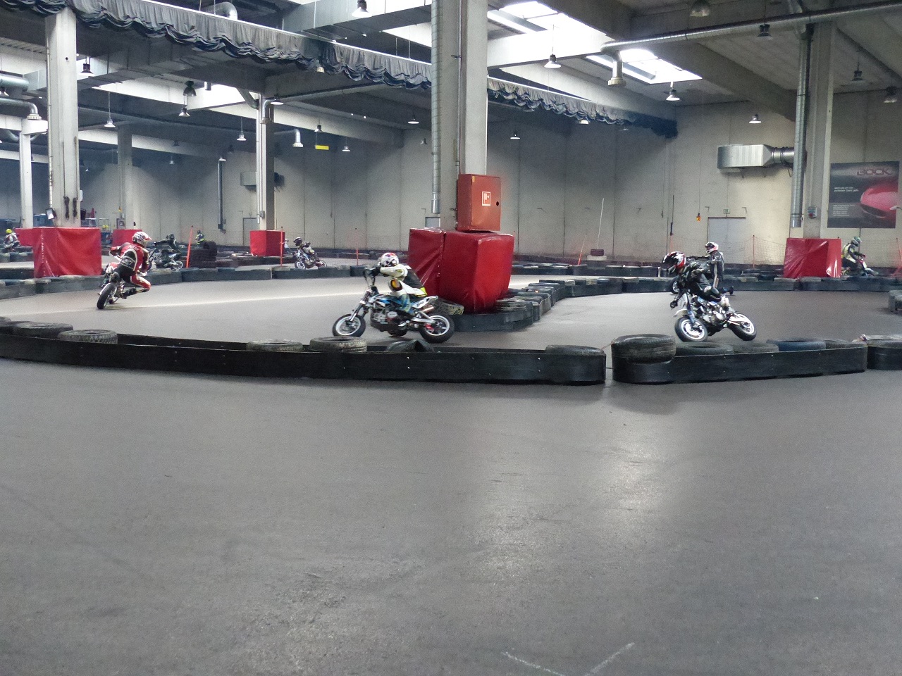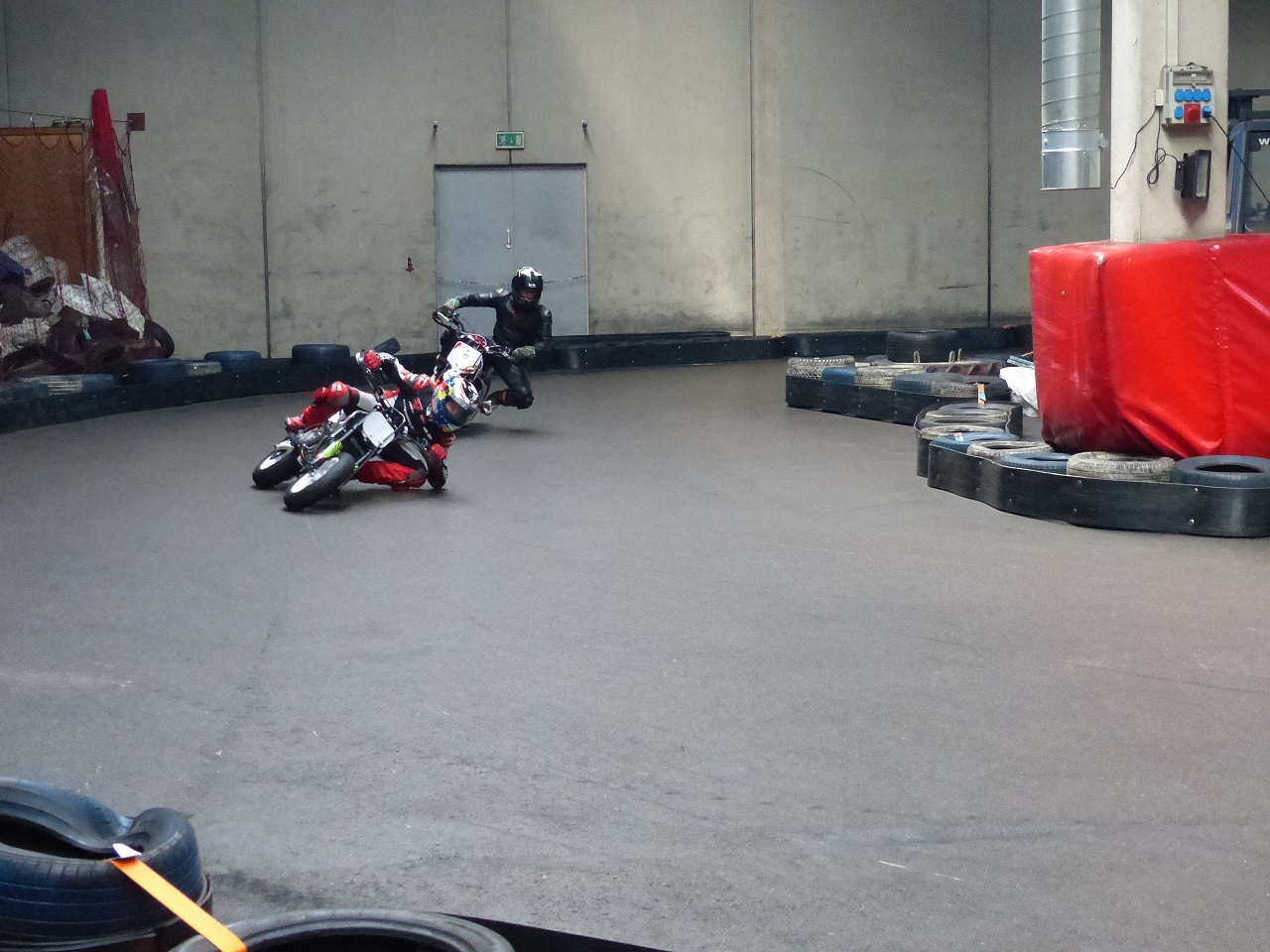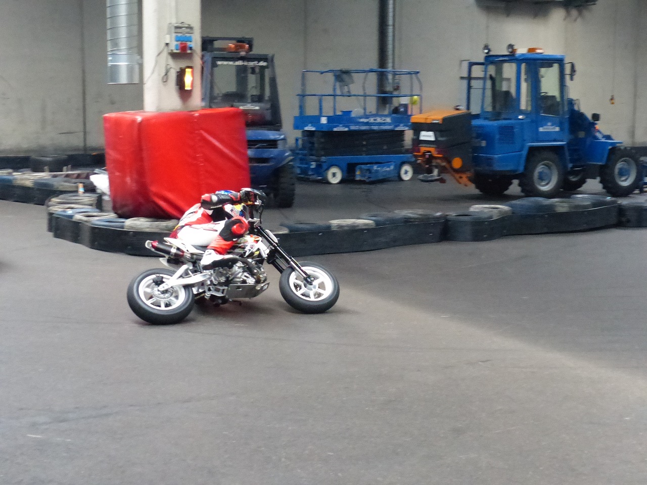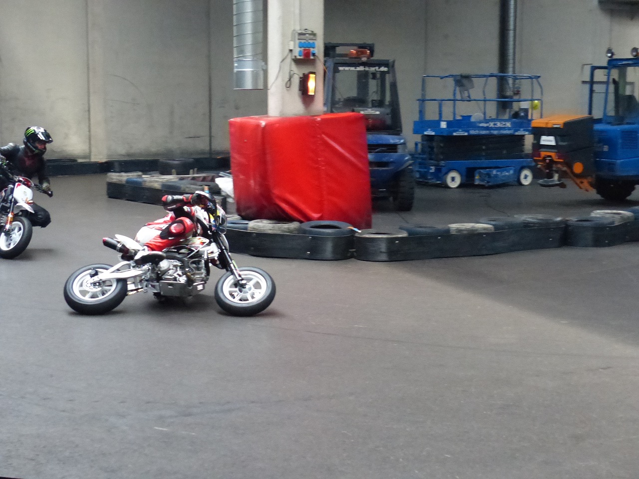 Das Rennen wurde stehend gestartet, wobei der ein oder andere wirklich stand oder nur sehr schwer in Schwung kam, aber 7-8 Pit-Bikes gemeinsam in die erste Kurve…ja doch...wie auf der Rennstrecke, nur bisschen kleiner. :D