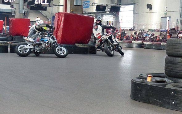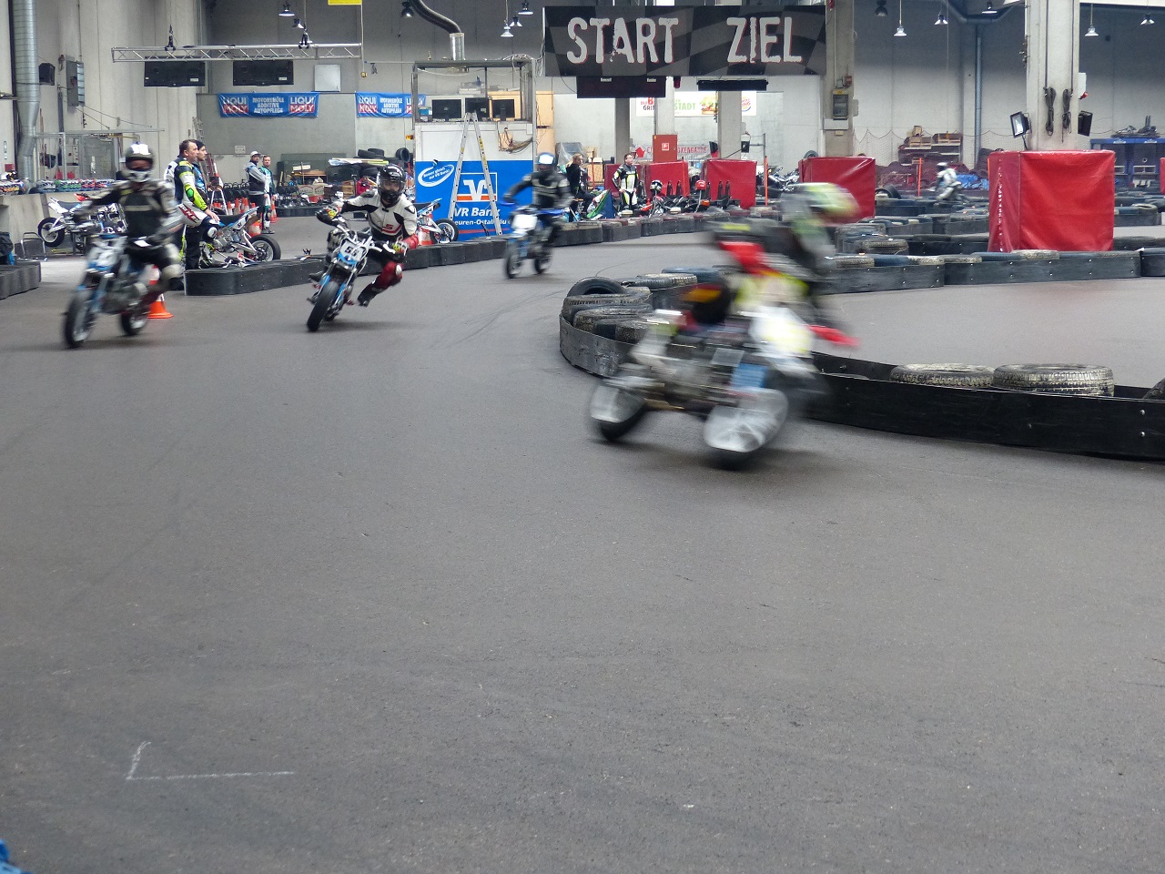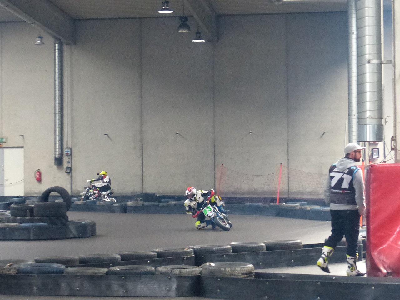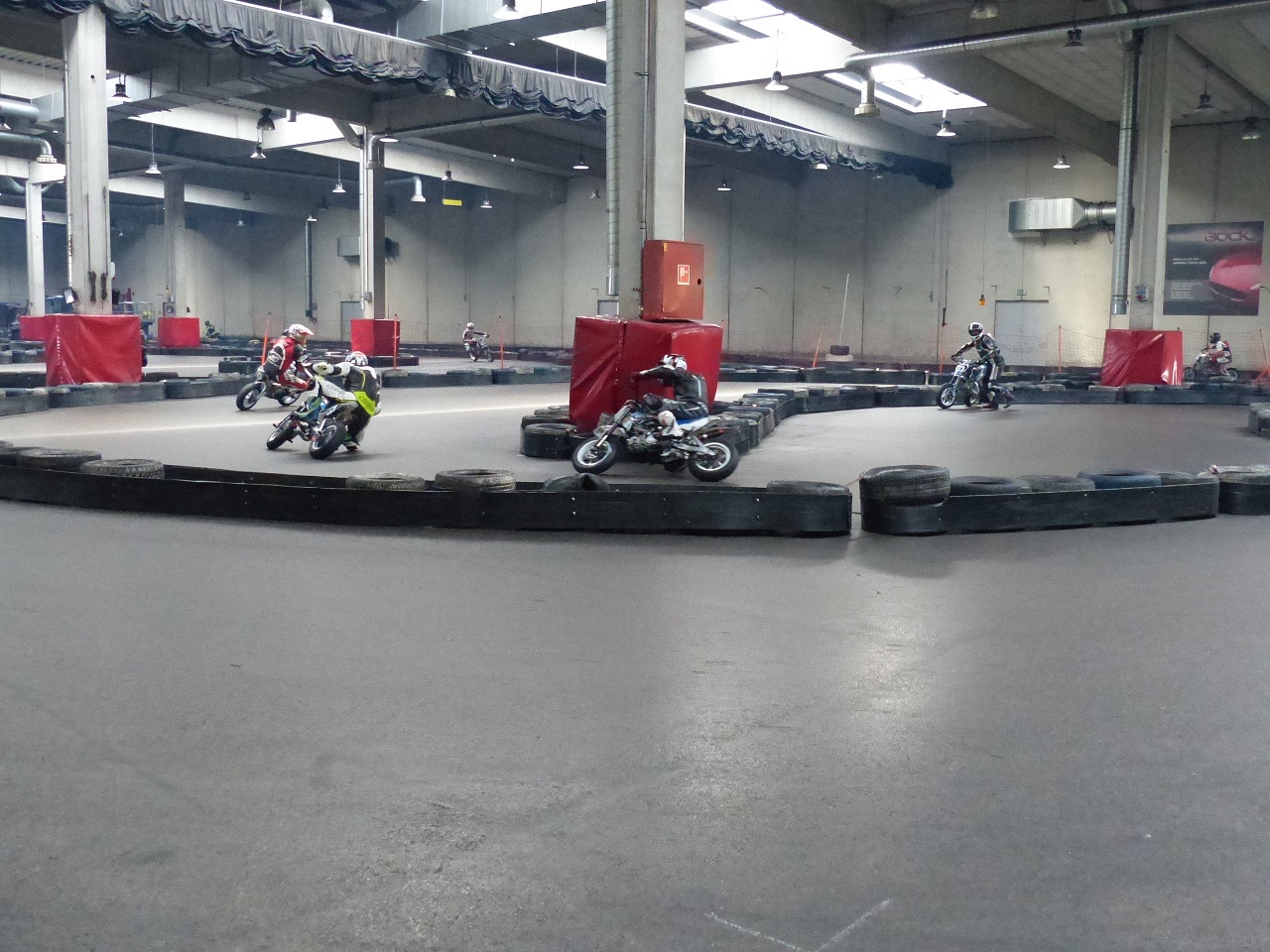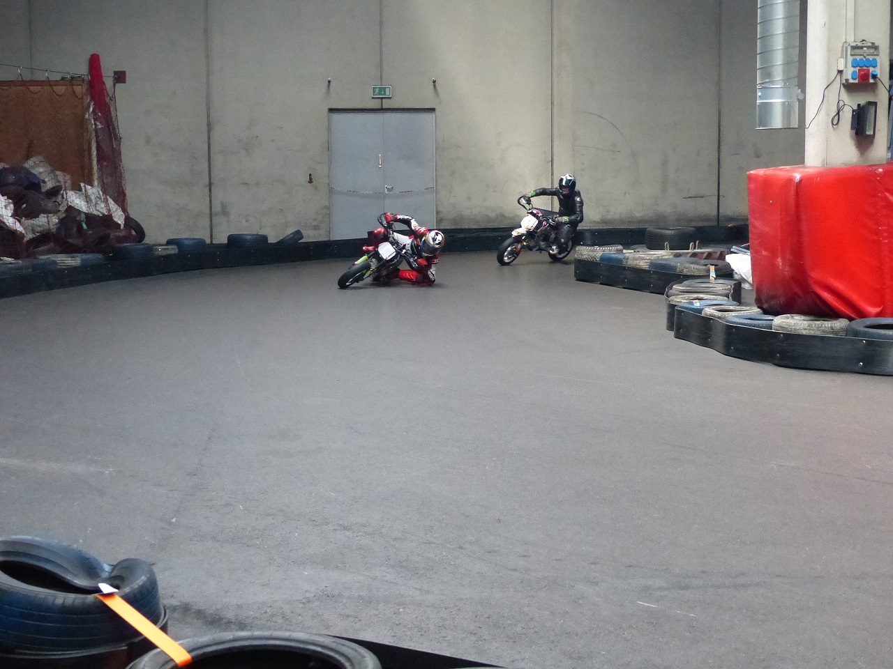 Das Rennen wurde stehend gestartet, wobei der ein oder andere wirklich stand oder nur sehr schwer in Schwung kam, aber 7-8 Pit-Bikes gemeinsam in die erste Kurve…ja doch...wie auf der Rennstrecke, nur bisschen kleiner. :D