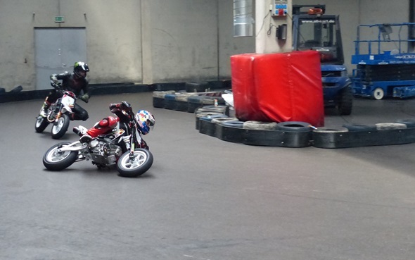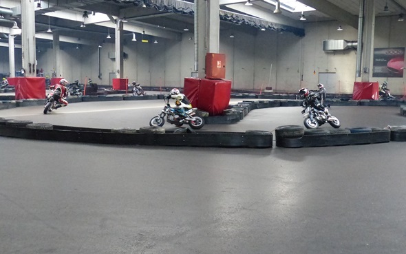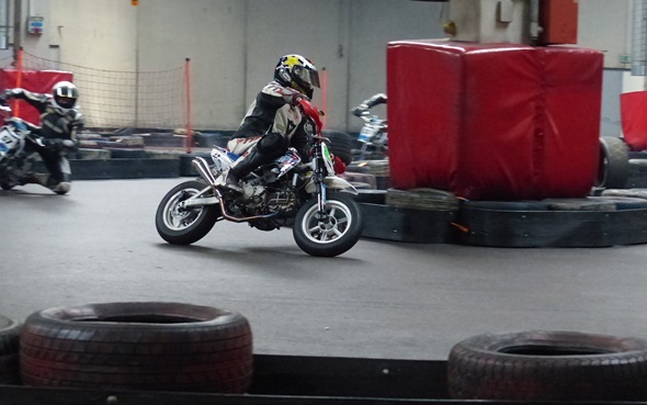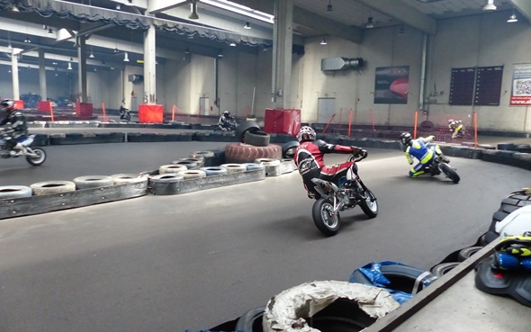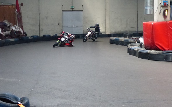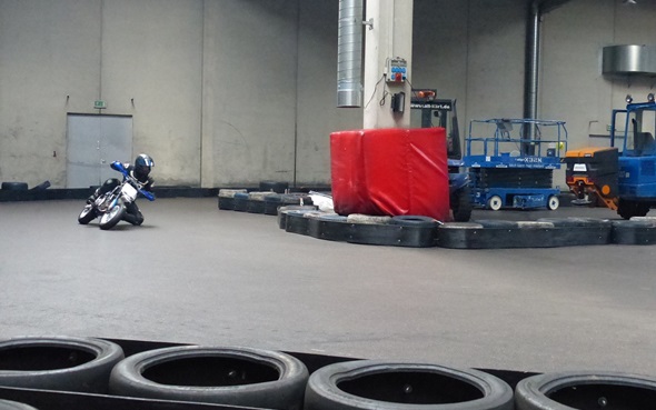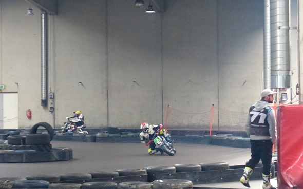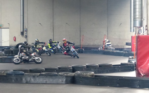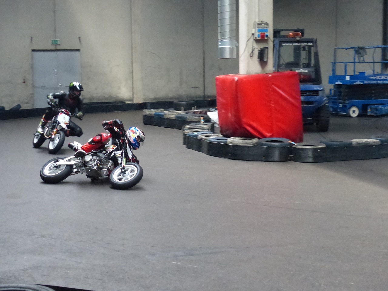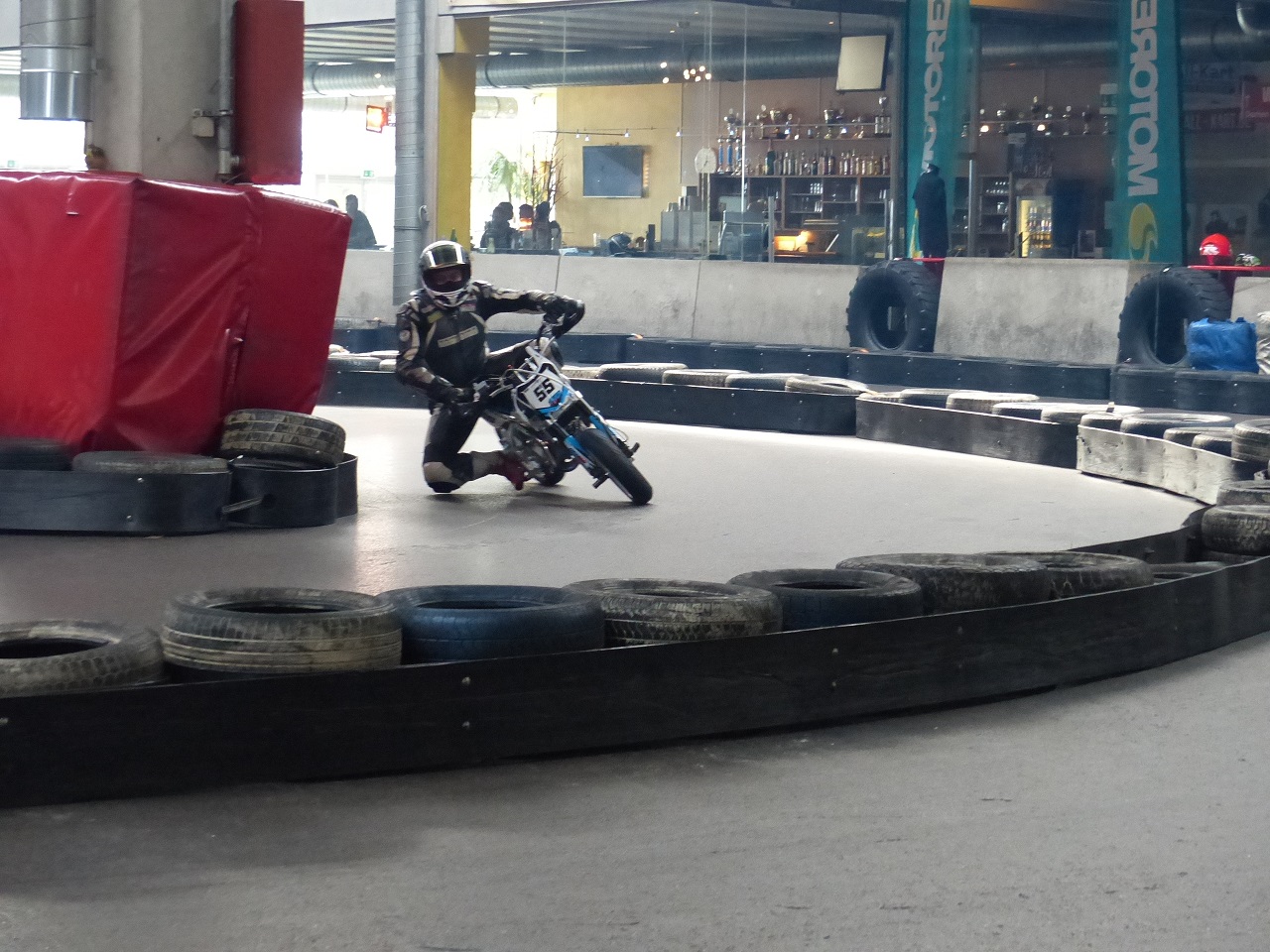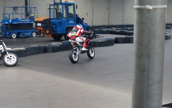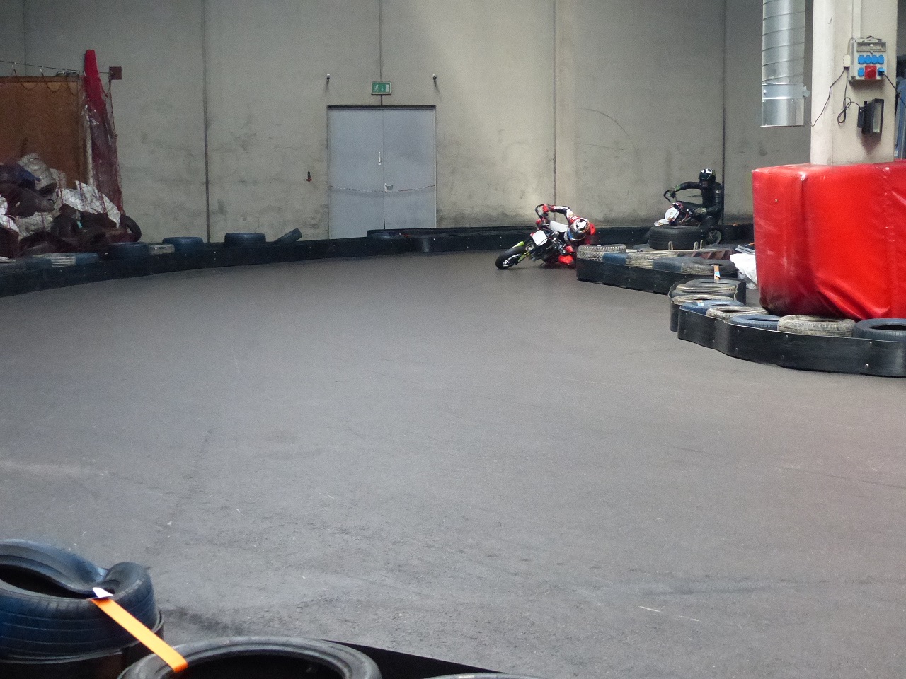 Das Rennen wurde stehend gestartet, wobei der ein oder andere wirklich stand oder nur sehr schwer in Schwung kam, aber 7-8 Pit-Bikes gemeinsam in die erste Kurve…ja doch...wie auf der Rennstrecke, nur bisschen kleiner. :D