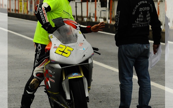 Nach den ersten beiden Turns der einzelnen Gruppen, wurden die Uhren wieder auf null gestellt und es startete das offizielle Zeittraining für die Rennen 1 der Klassen SSP600 & SBK750 / SBK1000 am Nachmittag. Dies musste allerdings für 30 Minuten wegen eines Sturzes unterbrochen werden, da der Rennstreckenbetrieb erst wieder aufgenommen werden kann/darf, wenn ein Sanitätswagen vor Ort ist.