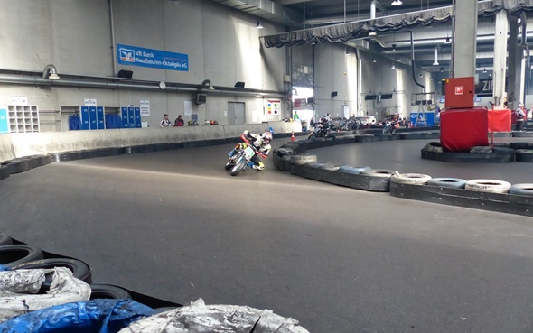 Fun pur…in zwei einzelne Stints wurde die Zweiradmeute dann auf die Kartbahn losgelassen und wenn auch unsere Rennstreckenfreunde aus dem Allgäu einen Heimvorteil genossen, gestalteten sich die Rundenzeiten doch ziemlich ausgeglichen.