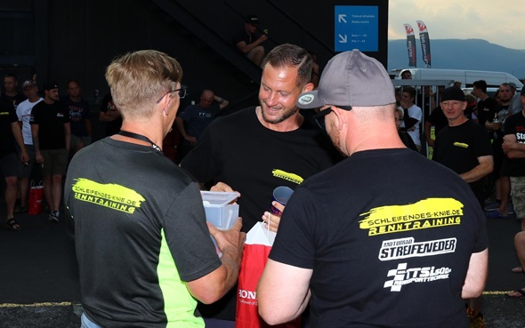 Da das Fahrerfeld auch von einigen Hochkarätern gespickt war (IDM), konnten diese in der offiziellen Mittagspause (bei mittlerweile 33°C !!!) Ihr können zeigen, bzw. bekamen für 20 Minuten eine freie Strecke auf der Sie sich austoben konnten. So kamen dann auch Rundenzeiten mit 1:53 Min in der SBK1000 und ein neuer Rundenrekord (Patrick Hobelsberger) mit 1:55 Min in der SSP 600 zustande.
