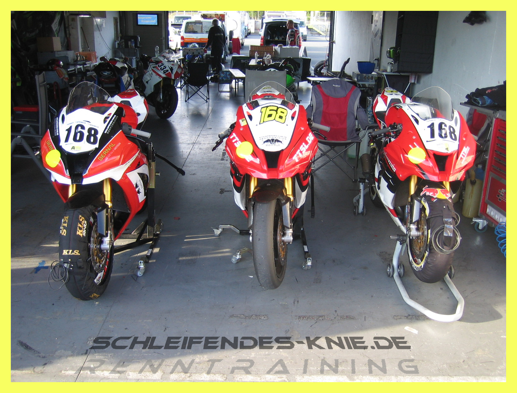 Team 17 (Hubert/Nicole/Sebi) hatten alle drei Motorräder auf Slicks und griffen erst später bei