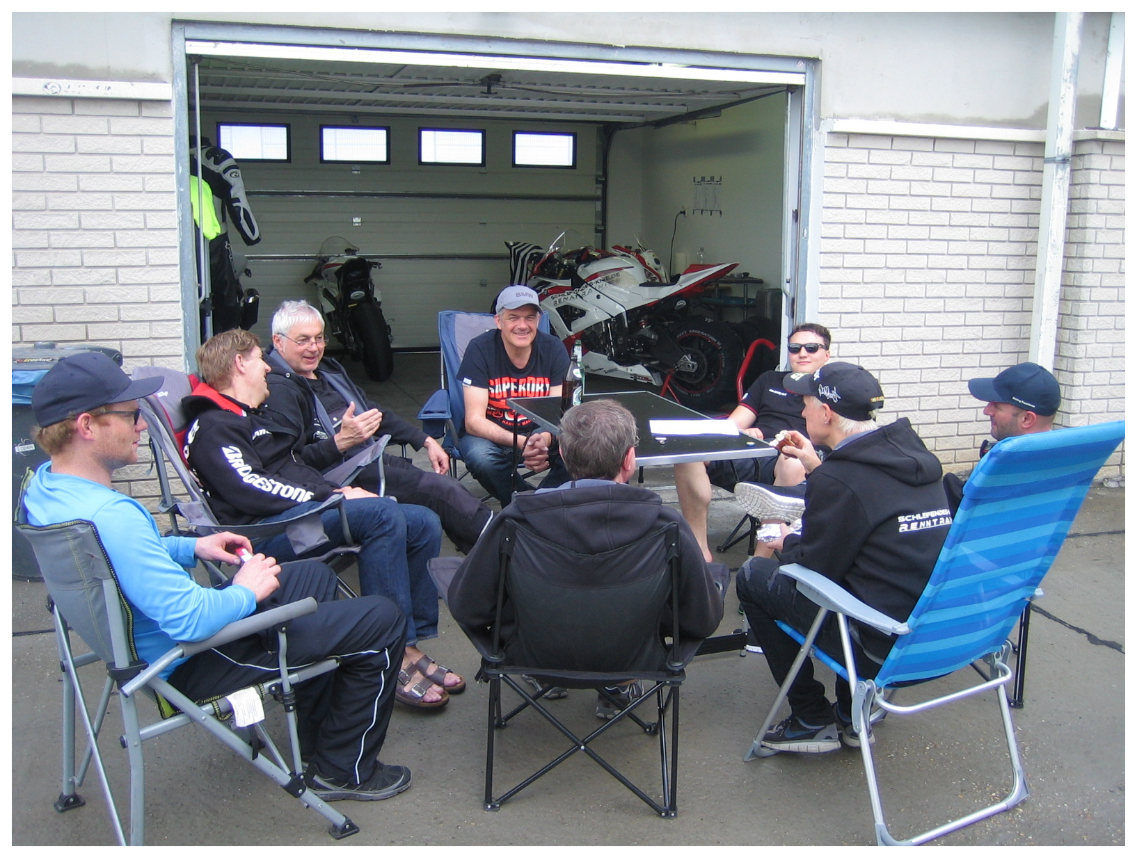 Nik und Nobbi gesellten sich am Abend nach den Siegerehrungen noch dazu, während im Fahrerlager noch kleinere Reparaturen und Einstellungsarbeiten durchgeführt wurden, aber der Großteil der Schleifer den ersten Tag eigentlich gemütlich ausklingen lassen konnte.