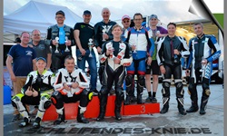 Leider hatten die Schleifer im 2h-Endurance Qualifying zwei weitere Ausfälle zu vermelden. Michael P. der für sein Team alles gab um eine vordere Startpositon zu erzielen, wurde bei diesem Einsatz mit einem Highsider belohnt, der sein Wochenende frühzeitig beendete und so der Teamkapitän nicht teilnehmen konnte. Klaus S. hatte einen Vorderradrutscher, der aber durch kleinere Reparaturen wieder behoben und das Wochenende fortgesetzt werden konnte. Daraufhin griff Klaus in die Trickkiste und stattete sich mit neuen „modischen“ Knieschleifern aus. ;)